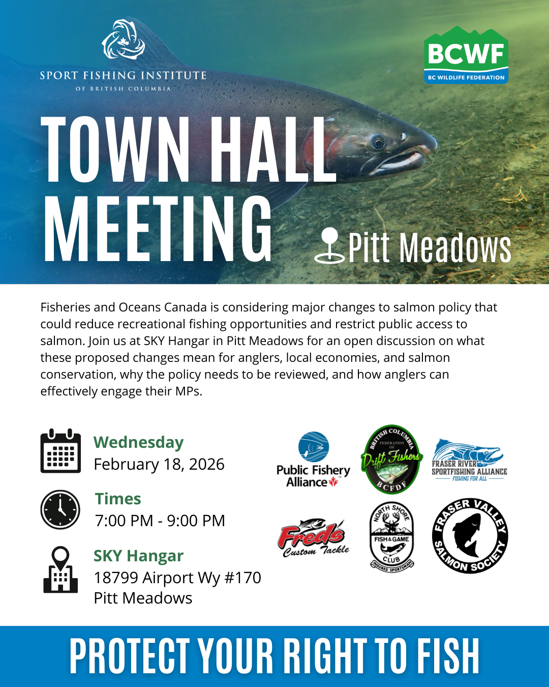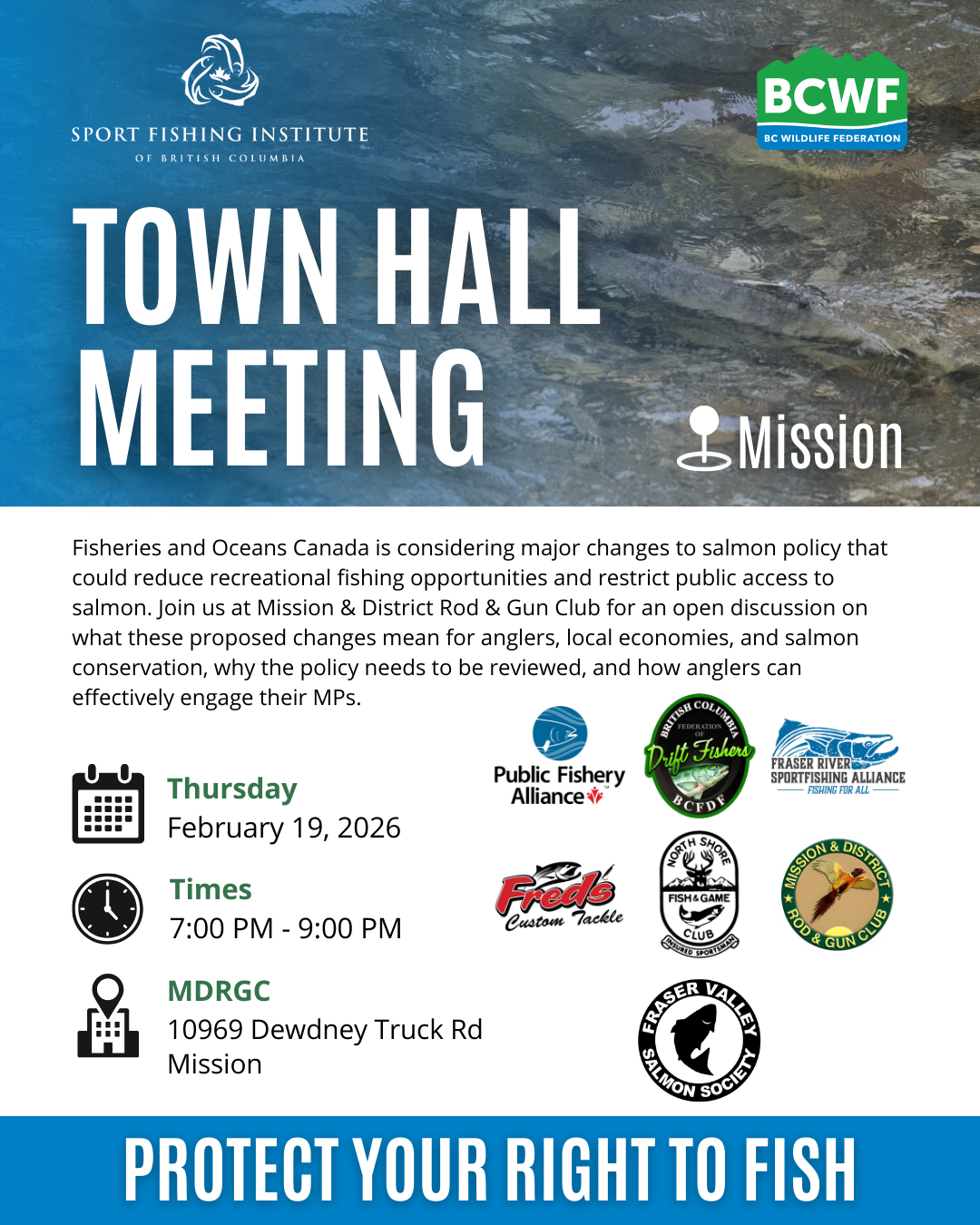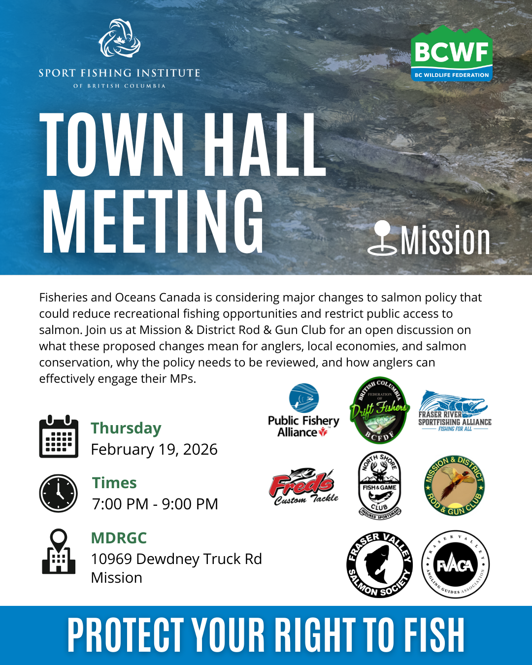 B.C. Wildlife Federation is hosting in-person town halls across B.C. to share information, answer questions, and help anglers engage directly with decision-makers.