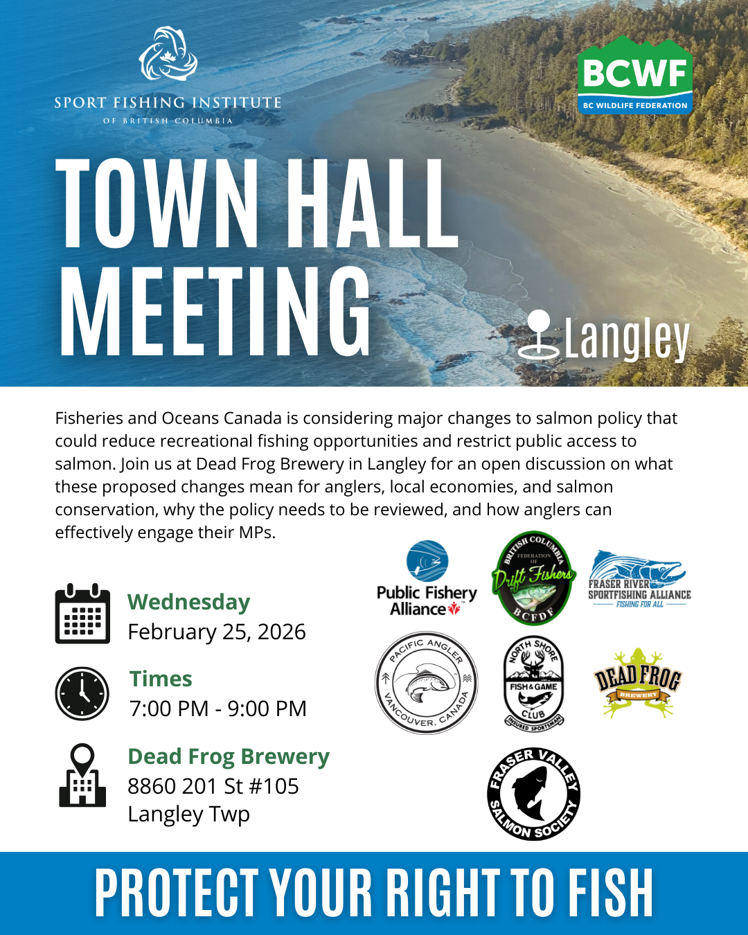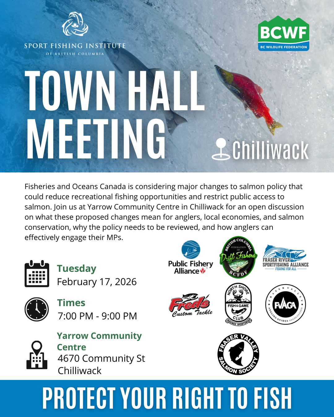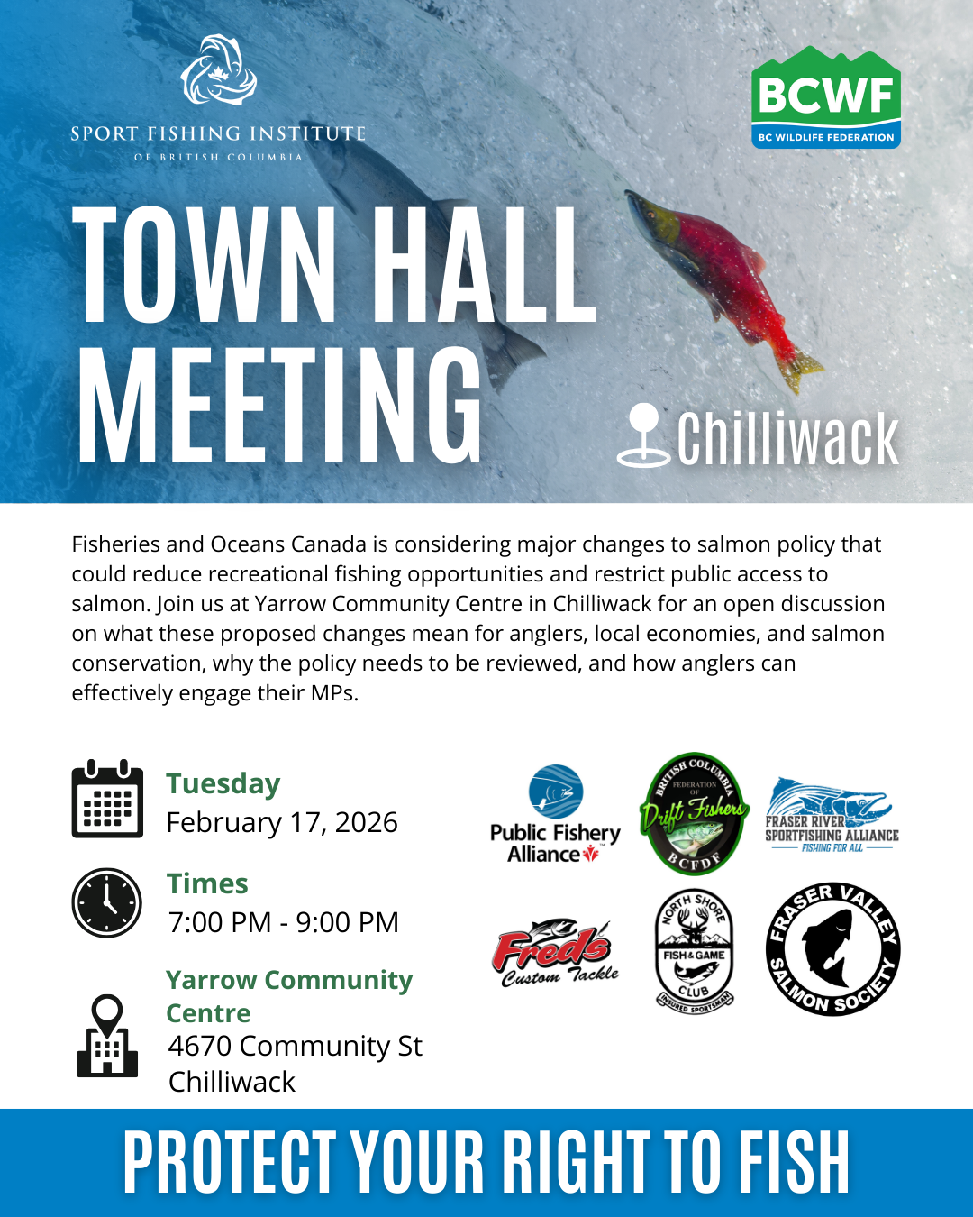 B.C. Wildlife Federation is hosting in-person town halls across B.C. to share information, answer questions, and help anglers engage directly with decision-makers.